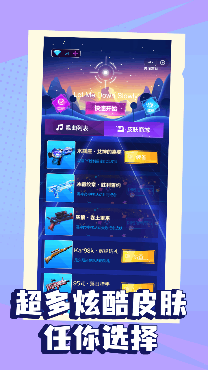 滑动开枪,随着刺激的音乐节奏击破音符!
